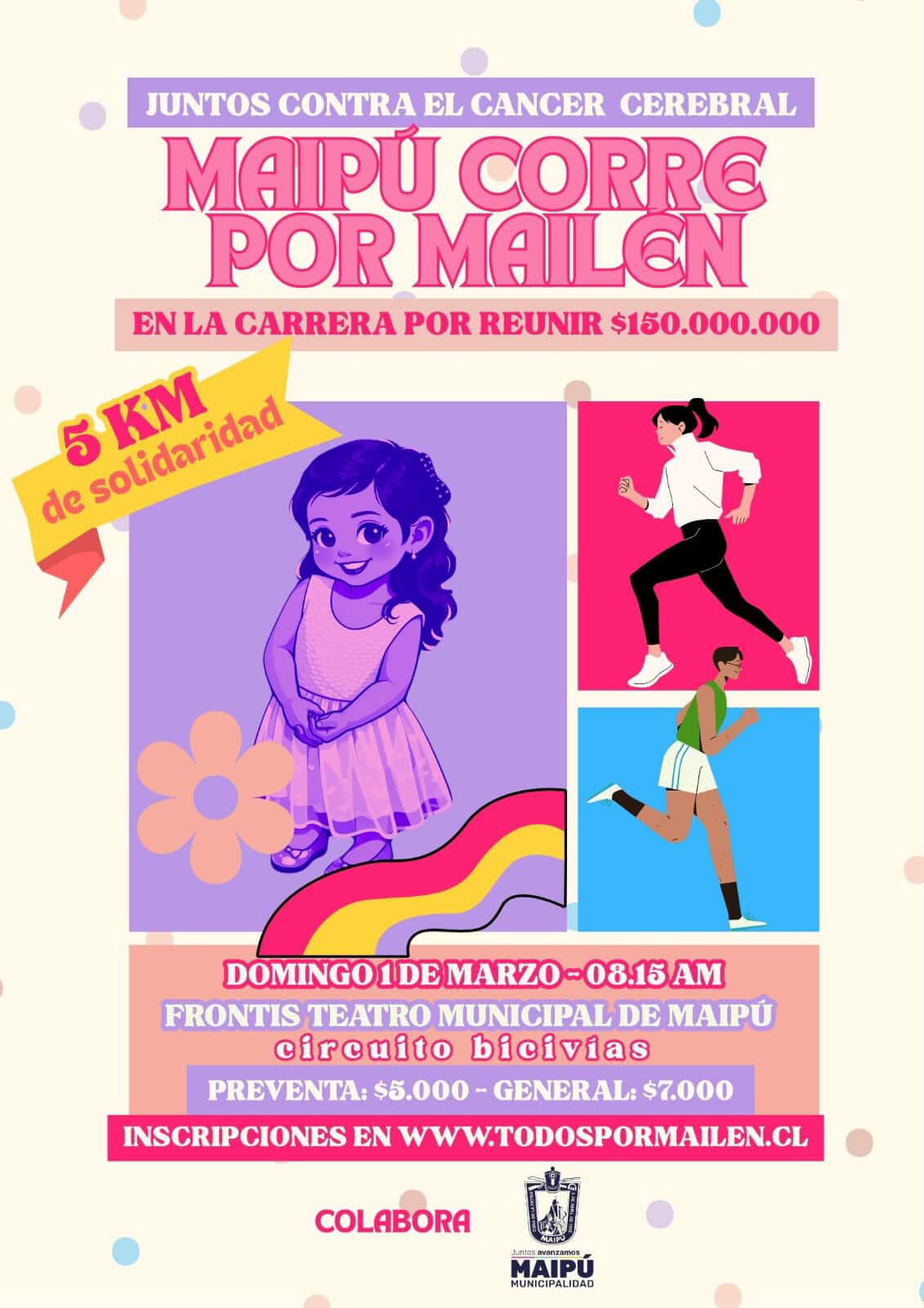 Este domingo 1 de marzo a las 08:15 AM, Maipú se une en un solo propósito: apoyar a Mailén en su lucha contra el cáncer cerebral.